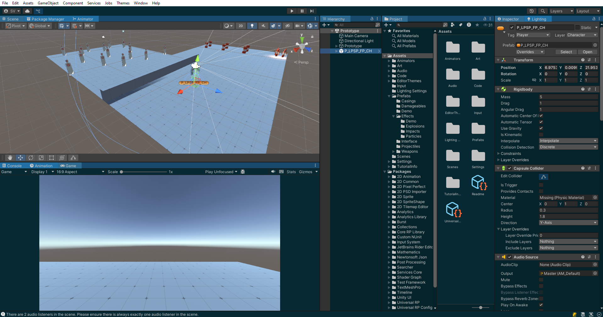 A fps prototype with explosions, gun shots. It is a unity project, which can be used as a unity asset, it contains sounds weapons, a main weapon and a secondary weapon, it contains particle effects, there is also some fire